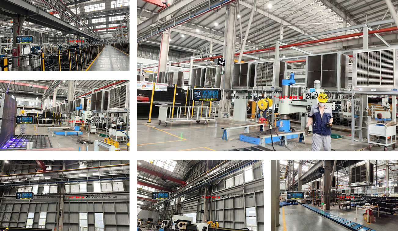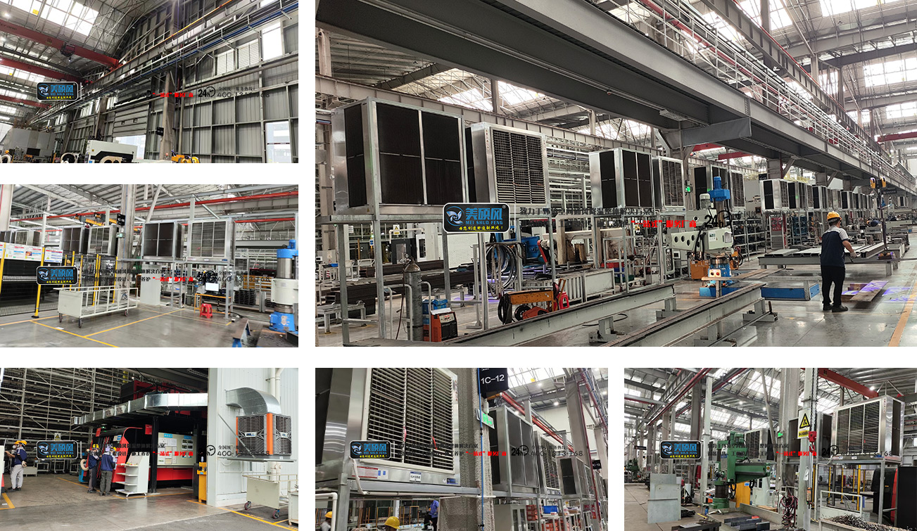 ? 焊接區:“可移動排煙罩 + 蒸發式水簾冷風機” 組合,既通過排煙罩(排煙效率≥90%)精準捕捉焊接煙塵,又用冷風機定向降溫 4-6℃,解決 “高溫 + 污染” 雙重痛點,且無積水不影響焊接質量。